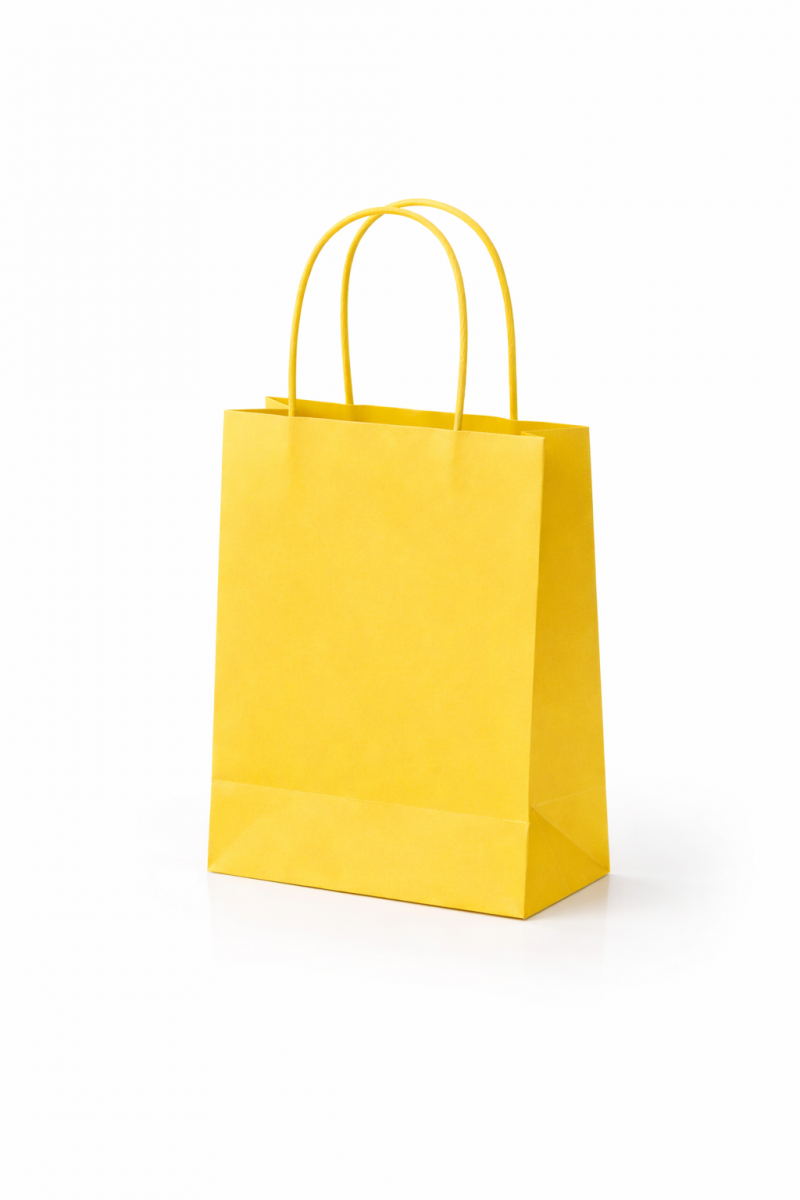 Twista paper bags are made from colored paper and feature twisted handles. They can be customized with your logo printed on one side using hot foil stamping only.These bags are colored with water-based inks and finished with a protective coating. The paperboard used is FSC-certified.