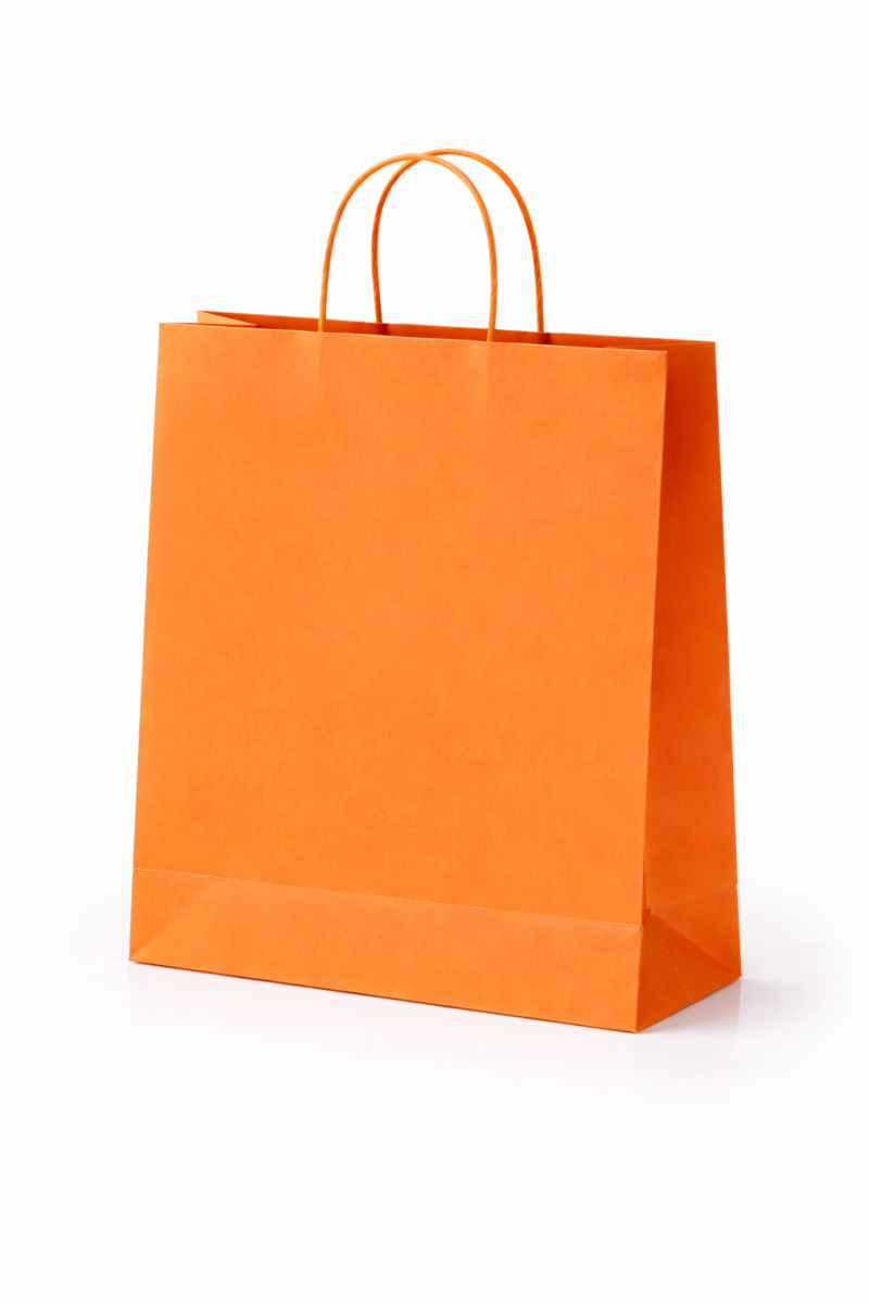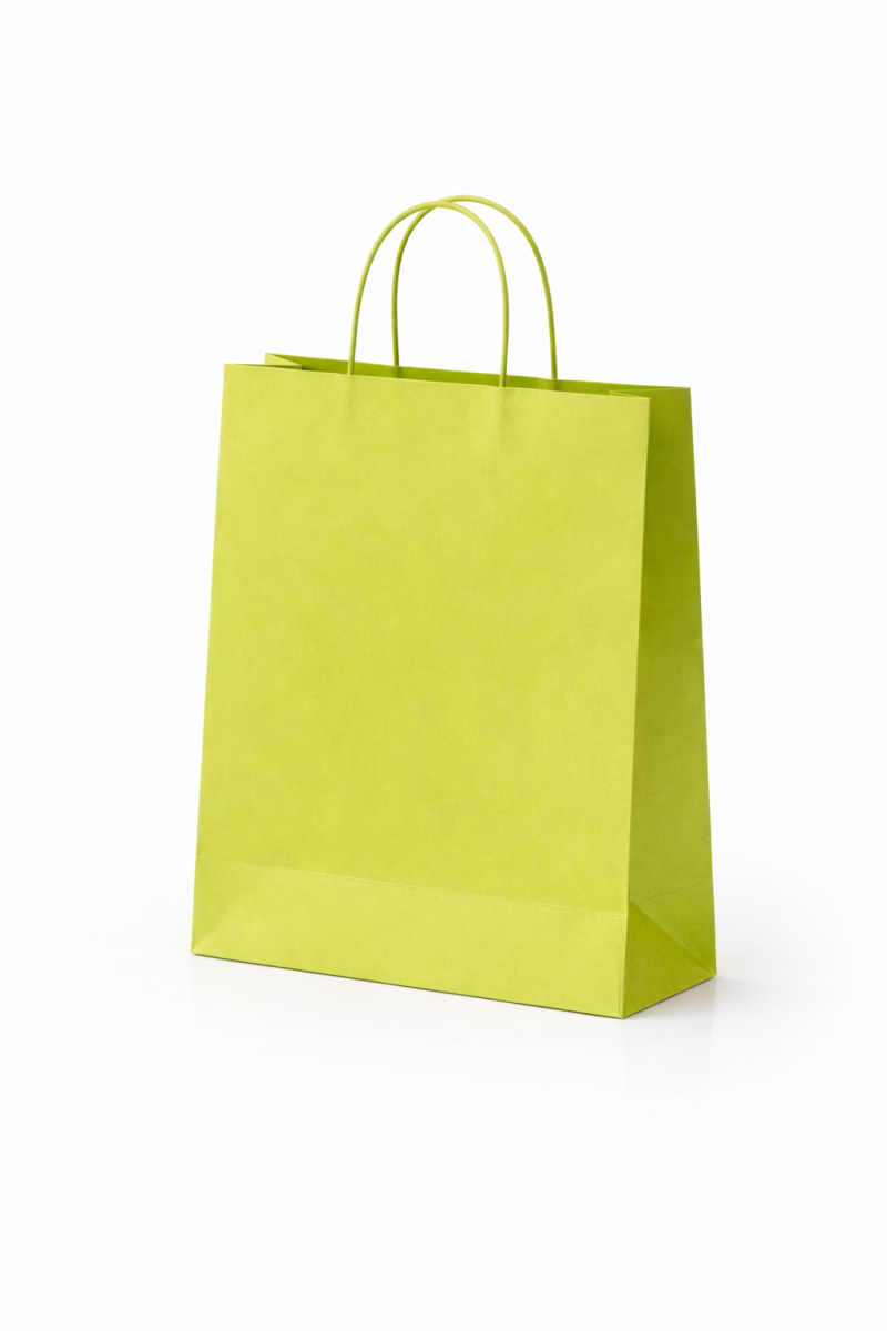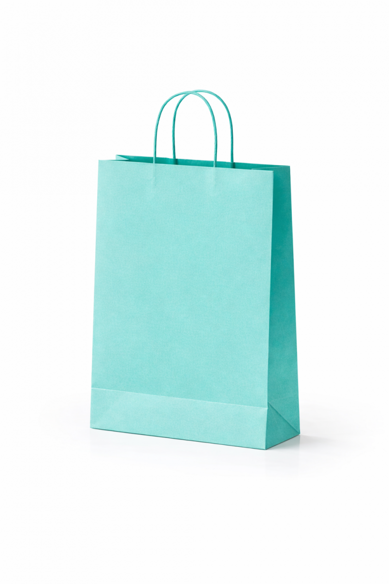 Twista paper bags are made from colored paper and feature twisted handles. They can be customized with your logo printed on one side using hot foil stamping only.These bags are colored with water-based inks and finished with a protective coating. The paperboard used is FSC-certified.