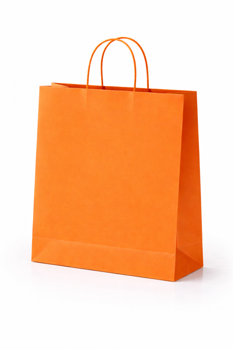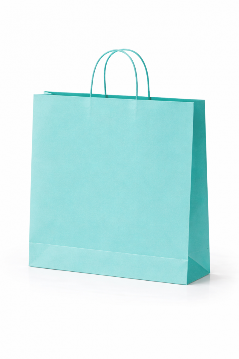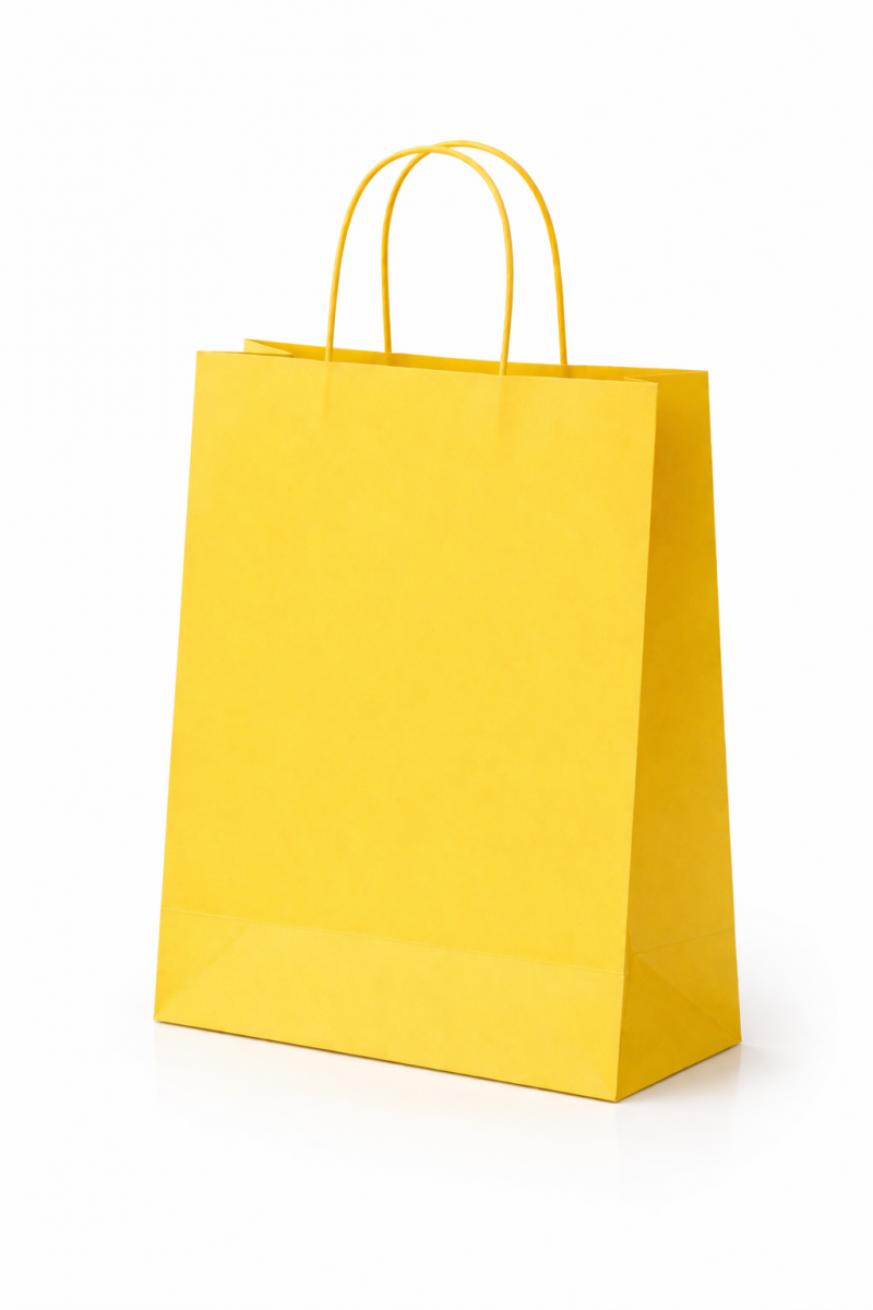 Twista paper bags are made from colored paper and feature twisted handles. They can be customized with your logo printed on one side using hot foil stamping only.These bags are colored with water-based inks and finished with a protective coating. The paperboard used is FSC-certified.