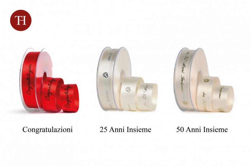 Pre-printed ribbon for special occasions, h25mm. Packed in 15m rolls.
