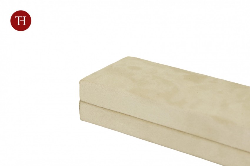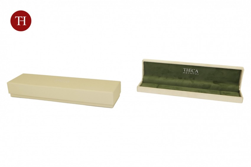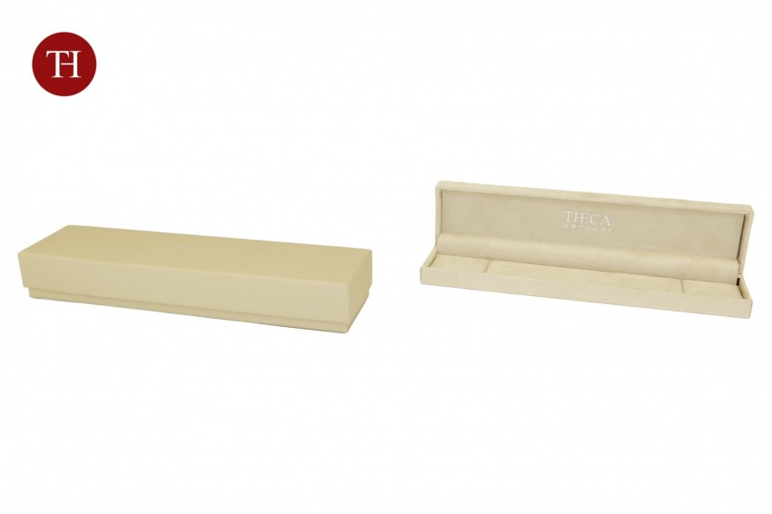 Astucci per gioielli rivestiti esternamente e internamente di tessuto scamosciato. L'interno è estraibile e selezionabile tra tre colori.