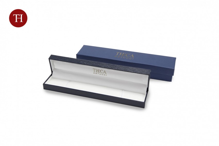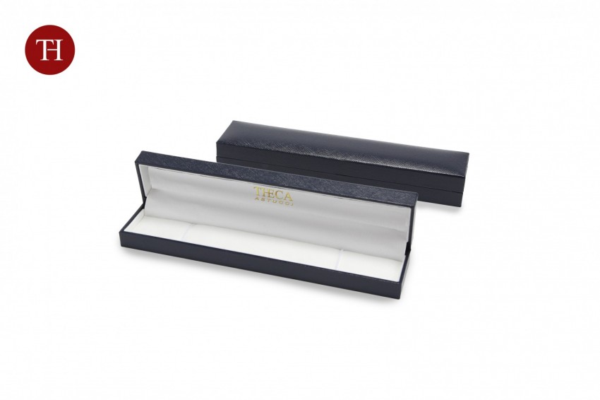 Astuccio per gioielli rivestito di carta plastificata e goffrata lucertola con interno di carta raso e tessuto floccato. Puoi stampare il tuo logo sulla fodera interna.
