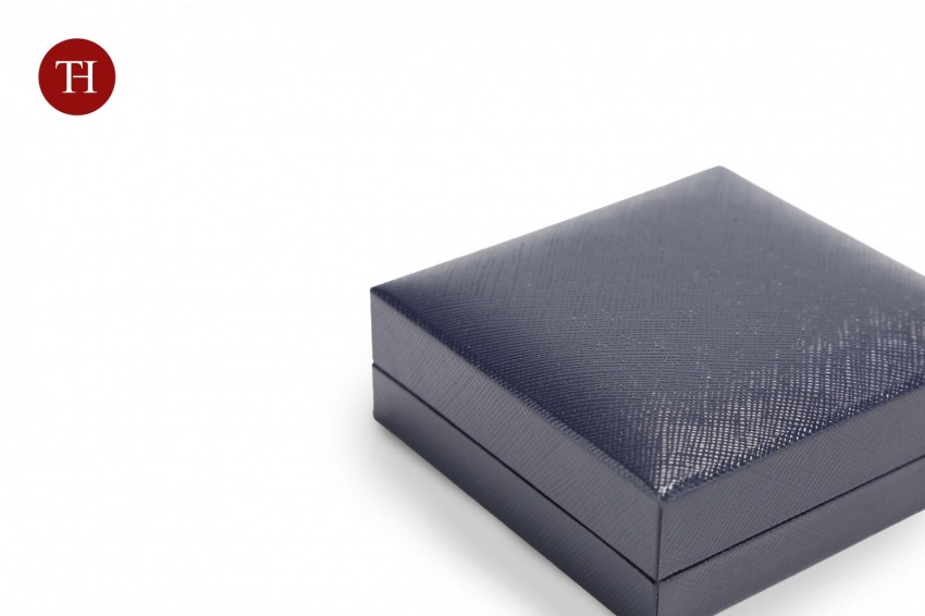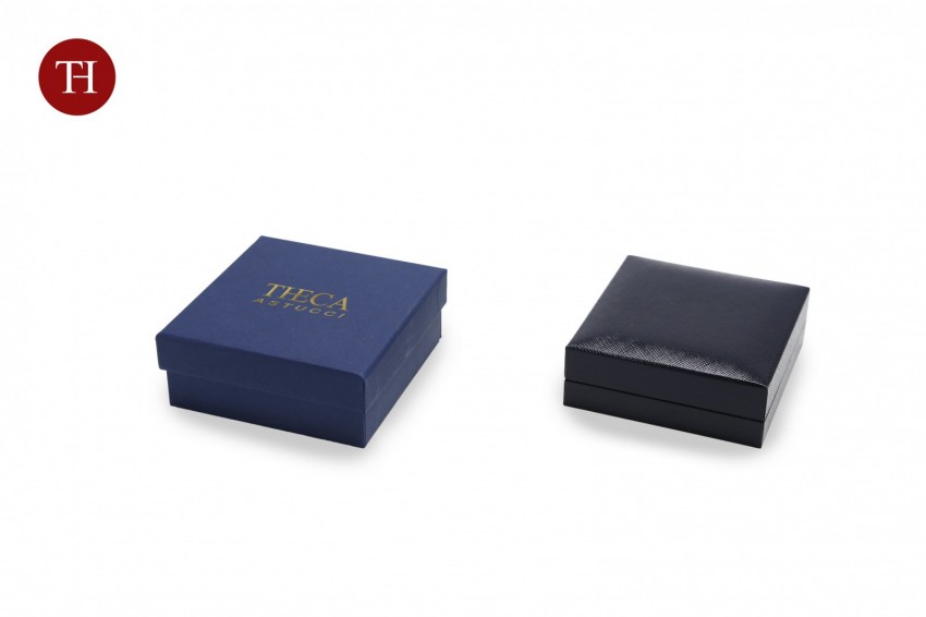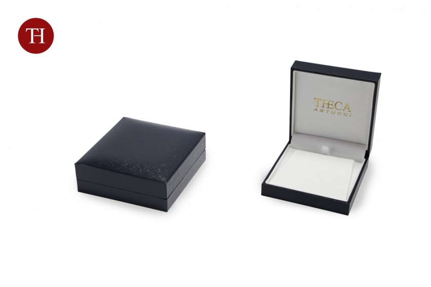 Astuccio per gioielli rivestito di carta plastificata e goffrata lucertola con interno di carta raso e tessuto floccato. Puoi stampare il tuo logo sulla fodera interna.